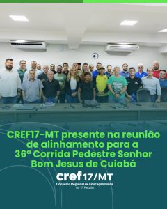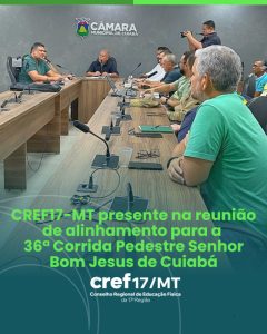 Na última quarta-feira (06/03), o 2º vice-presidente do CREF17-MT, Dinho Ribeiro, representou o Conselho na reunião de alinhamento para a 36ª Corrida Pedestre Senhor Bom Jesus de Cuiabá, realizada na Câmara Municipal de Cuiabá.