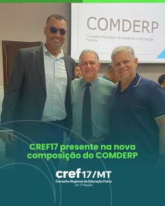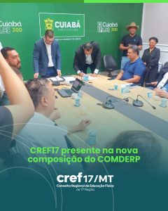 O Conselho Regional de Educação Física da 17ª Região – CREF17/MT segue atuante na construção de políticas públicas para o esporte e a recreação em Cuiabá. Nesta semana, o CREF17 marcou presença na posse dos novos membros do Conselho Municipal de Desporto e Recreação Pública (COMDERP).