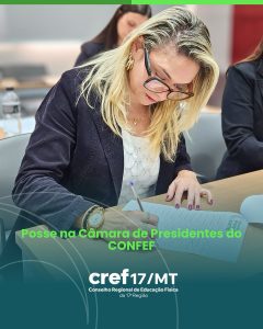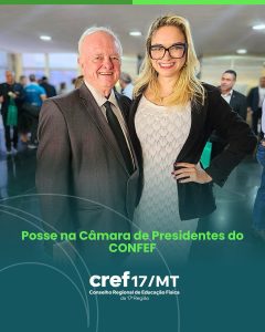 No último sábado (05/07), a presidente do CREF17/MT, Prof.ª Fabi Moraes, tomou posse como integrante da Câmara de Presidentes do Conselho Federal de Educação Física (CONFEF), para o mandato 2025/2028.