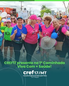O CREF17 marcou presença na 1ª Caminhada Viva Com + Saúde, evento promovido pela AAPOIO em parceria com a Rede de Supermercados Machado de Sinop, com o objetivo de conscientizar sobre a prevenção da obesidade e a importância da atividade física para a saúde.