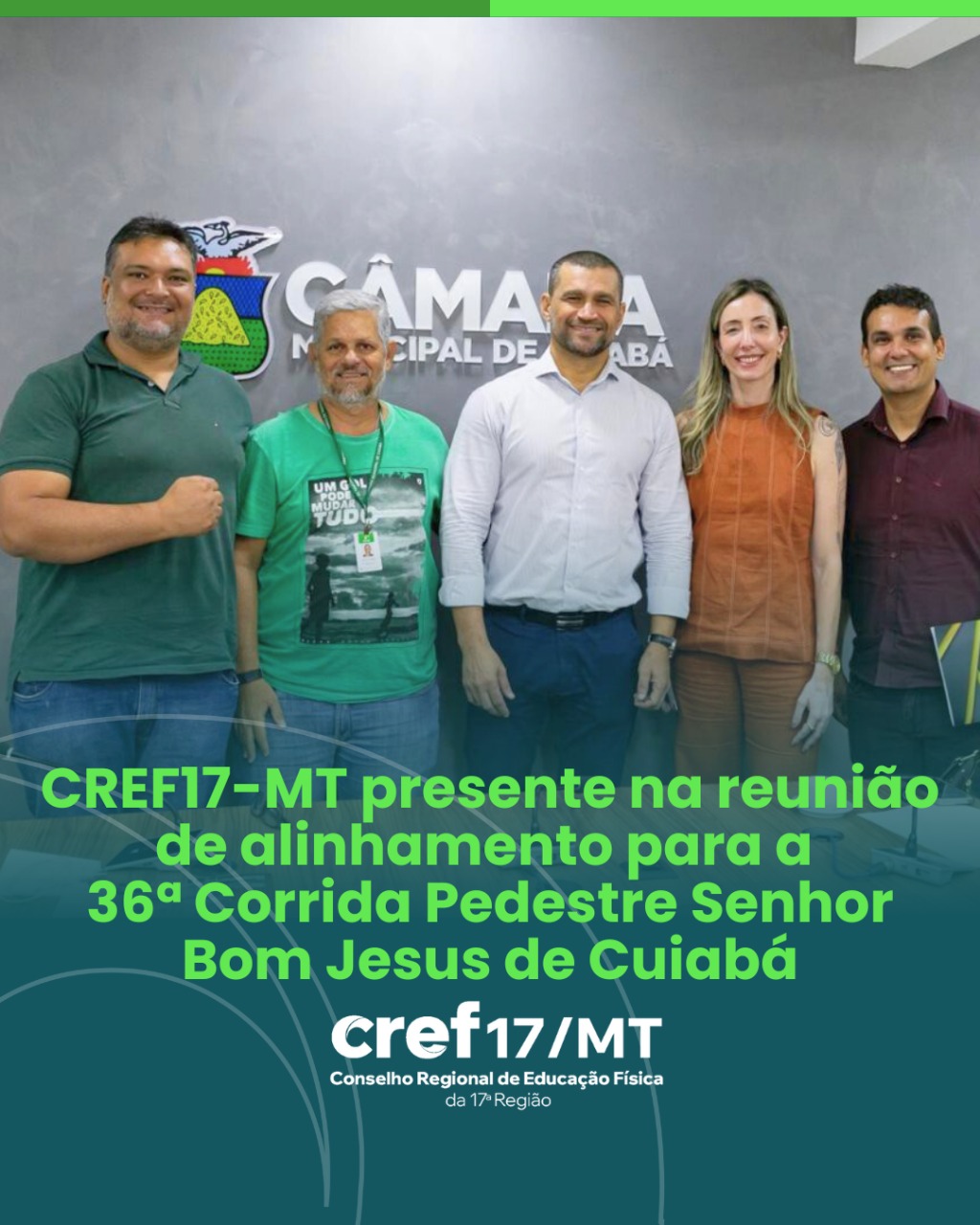 Na última quarta-feira (06/03), o 2º vice-presidente do CREF17-MT, Dinho Ribeiro, representou o Conselho na reunião de alinhamento para a 36ª Corrida Pedestre Senhor Bom Jesus de Cuiabá, realizada na Câmara Municipal de Cuiabá.