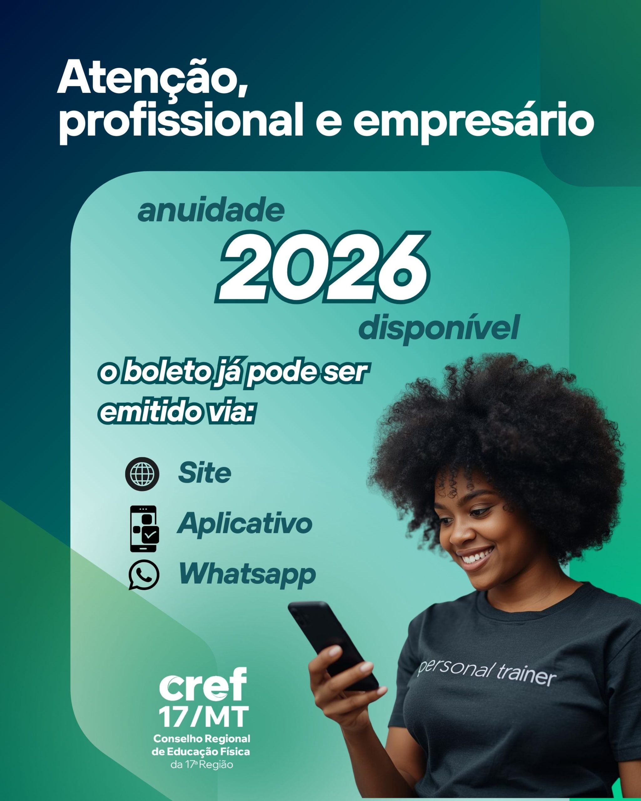 O CREF17/MT reforça a importância de manter a regularidade profissional e empresarial, garantindo segurança jurídica, valorização da profissão e o pleno exercício das atividades na área da Educação Física.