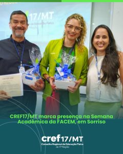 Representando Mato Grosso, também estiveram presentes a presidente do CREF17/MT, Fabi Moraes, e o Conselheiro Federal Carlos Eilert, reforçando que o CREF17 segue firme no compromisso de trabalhar pela sociedade e pelos profissionais de Educação Física do nosso estado.