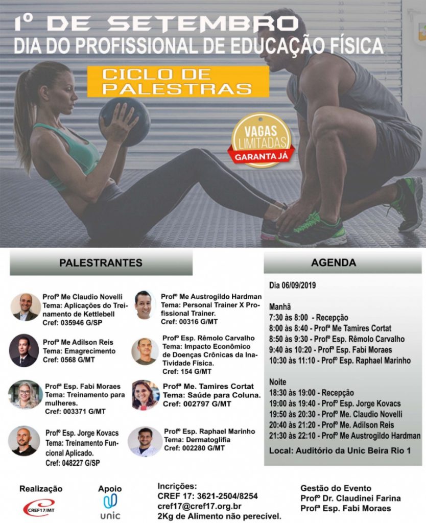 Assessoria de Imprensa CREF17/MT Para comemorar o dia do profissional de Educação Física, que é celebrado em 1º de setembro em todo Brasil, será realizado na capital um Ciclo…