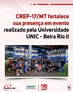 Em comemoração ao Dia do Profissional de Educação Física, celebrado em 1º de setembro, em parceria com o CREF-17/MT, a FCarp encerrou os ciclos de palestras do mês em Araputanga, com a presença do Professor Edson Luiz Manfrin, Presidente do CREF-17/MT, e do Professor Julio Cesar de Souza Garcia, Coordenador do Departamento de Orientação e Fiscalização do CREF-17/MT.