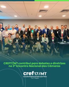 O CREF17/MT marcou presença no 3º Encontro Nacional das Câmaras do Sistema CONFEF/CREFs, realizado nos dias 13 e 14 de novembro, reforçando seu compromisso com o alinhamento nacional das diretrizes que orientam a atuação profissional da Educação Física. O evento reuniu representantes de todo o país e se consolidou como um dos principais espaços de integração, planejamento e fortalecimento das políticas que movem a profissão.