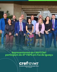 O Conselho Regional de Educação Física da 17ª Região – CREF17/MT esteve presente no Congresso Internacional de Educação Física (FIEPS), realizado nos dias 17 e 18 de janeiro, em Foz do Iguaçu (PR), reforçando seu compromisso com o fortalecimento da Educação Física e com a atuação integrada ao Sistema CONFEF/CREFs.