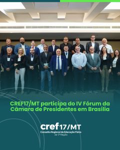 Na última sexta-feira (26), a presidente do Conselho Regional de Educação Física (CREF17/MT), Fabi Moraes, esteve presente no Encontro da Câmara de Presidentes no IV Fórum do Sistema CONFEF/CREFs, em Brasília.