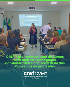 O Conselho Regional de Educação Física da 17ª Região – CREF17/MT, sob a presidência de Fabi Moraes, sediou em Cuiabá, entre os dias 12 e 15 de agosto de 2025, a Semana de Cursos, que trouxe como pauta central dois temas de grande relevância para a atuação dos Conselhos Profissionais: