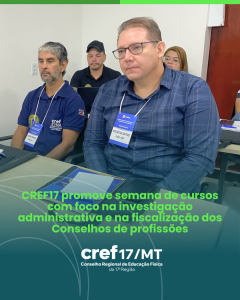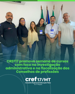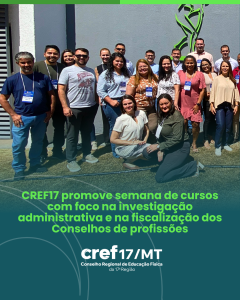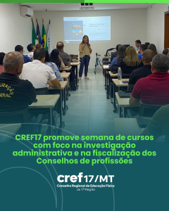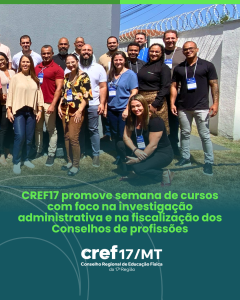 O Conselho Regional de Educação Física da 17ª Região – CREF17/MT, sob a presidência de Fabi Moraes, sediou em Cuiabá, entre os dias 12 e 15 de agosto de 2025, a Semana de Cursos, que trouxe como pauta central dois temas de grande relevância para a atuação dos Conselhos Profissionais: