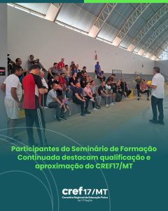 A realização do Seminário de Formação Continuada de Educação Física, em Primavera do Leste, também foi marcada pela avaliação positiva dos participantes, que destacaram a importância da iniciativa para a atualização profissional e para a aproximação do Conselho Regional de Educação Física da 17ª Região (CREF17/MT) com os profissionais do interior de Mato Grosso.