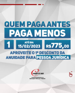 Até o dia 15 de fevereiro, somente por meio de boleto eletrônico, você terá desconto ao quitar a sua anuidade!
